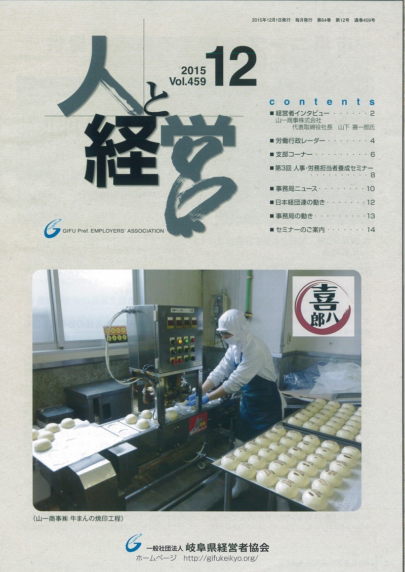 2015 · 10月 30日, 2015年 「(一社)岐阜県経営者協会」入会 より良い会社、より働きやすい会社、より必要とされる会社になることを目指し、労使関係の安定、雇用の開発、人事労務管理諸制度の近代化をテーマとして活動している「一般社団法人岐阜県経営者協会」に入会しました。 お知らせ一覧(2015) tagPlaceholderカテゴリ: