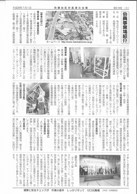 2016 · 7月 01日, 2016年 飛騨地区労基連合会報「会員事業場紹介」 一般社団法人飛騨地区労働基準協会連合会の会報誌である飛騨地区労基連合会報の「会員事業場紹介」のコーナーに弊社の記事が掲載されました! お知らせ一覧(2016) tagPlaceholderカテゴリ: