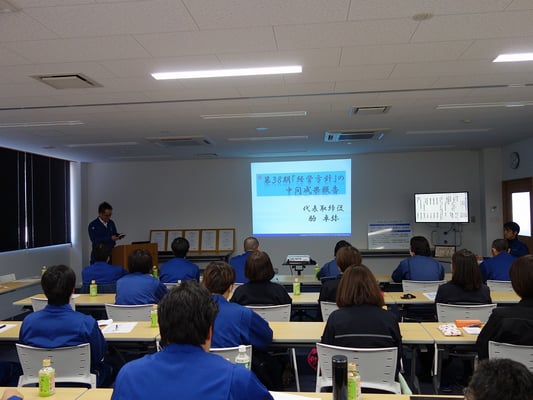 午前中にリスクアセスメントについての安全衛生教育と総務営業部が講師を担って「見積」がテーマの学習会を行い、午後から永年勤続表彰と目標推進活動、安全衛生活動・5S活動等の「中間成果報告会」を新高山支店で行いました。