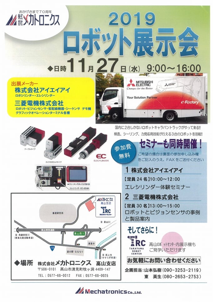 「三菱電機株式会社」「株式会社アイエイアイ」「株式会社パトライト」「株式会社高山ロボットセンター」「株式会社メカトロニクス」のコラボ企画「ロボット展示会2019」を開催しました!