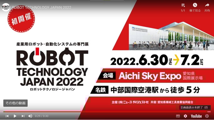 2022年6月30日(木)~7月2日(土)にAichi Sky Expo(愛知県国際展示場)で産業用ロボット・自動化システムの専門展「ROBOT TECHNOLOGY JAPAN 2022(ロボットテクノロジージャパン)」が開催されました。