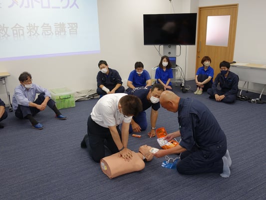 今回は午前中に「インボイス制度勉強会」「安全衛生大会」「安全衛生教育」を行い、午後から「永年勤続表彰」「第42期成果報告会」「第43期経営方針発表会」を高山支店にて行いました。「安全衛生教育」として”高山消防署 清見出張所”様より講師をお招きして受講した「救命講習」は大変貴重な体験となりました。
