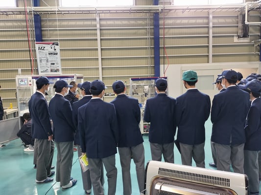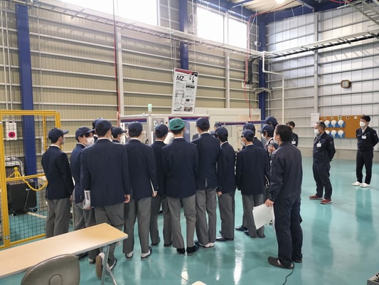 「高山市雇用促進協議会」主催の「地元企業見学会」が開催され、見学する企業の一つに「高山ロボットセンター」が選ばれました。「岐阜県立高山工業高等学校」電子機械工学科 1年生の生徒さん28名と先生2名、高山市雇用促進協議会様から2名が見学に訪れてくれました。