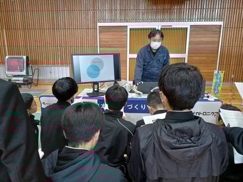 「なぜ働くのか?なぜUターンしてきたのか?」の講演から始まり、各企業の若手社員と代表生徒によるパネルディスカッションと各社の企業ブースを自由に見学していただく体験型の企業紹介を行い、「飛騨地域にこんな会社があるんだ」と知ってもらえるよう仕事の内容ややりがい、仕事の楽しさなどを見て聴いて触って疑似体験していただきました。