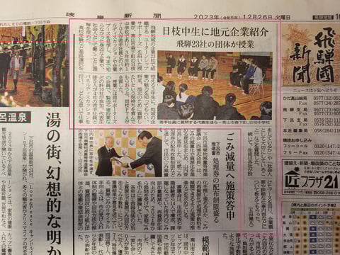地域のため、地域の子どもたちのため、ユーターンシップサポーターズのメンバーから10社が集い、高山市立日枝中学校 3年生の生徒さんを対象に「飛騨の企業紹介」を実施しました。